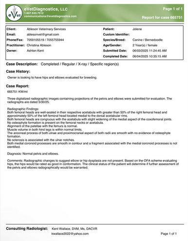 Paw Print Pedigree Profile: Clear by parentage, only possible carrier status is Bernese DM