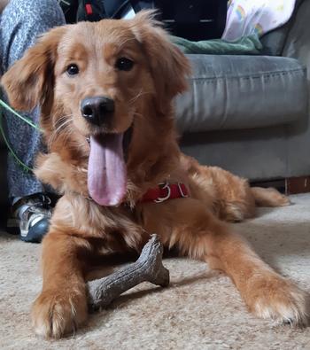 Trixie and Theo are expecting their first litter together August 28th, 2021. We are expecting their puppies to be between 30 to 50lbs full grown. We expect Apricots and Red with some abstract markings. Trixie is a fun, playful girl that loves to be up on her guardian homes lap. Theo is a sweet, cuddly boy. These puppies will all have straight coats, just like Theo.